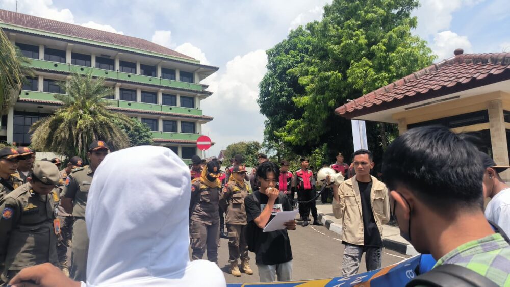 TANGERANGBERKABAR.ID – Aliansi Mahasiswa Penegak Demokrasi (AMPD) menggelar aksi demonstrasi di depan Gedung Bupati Tangerang, Senin (1/12/2025).