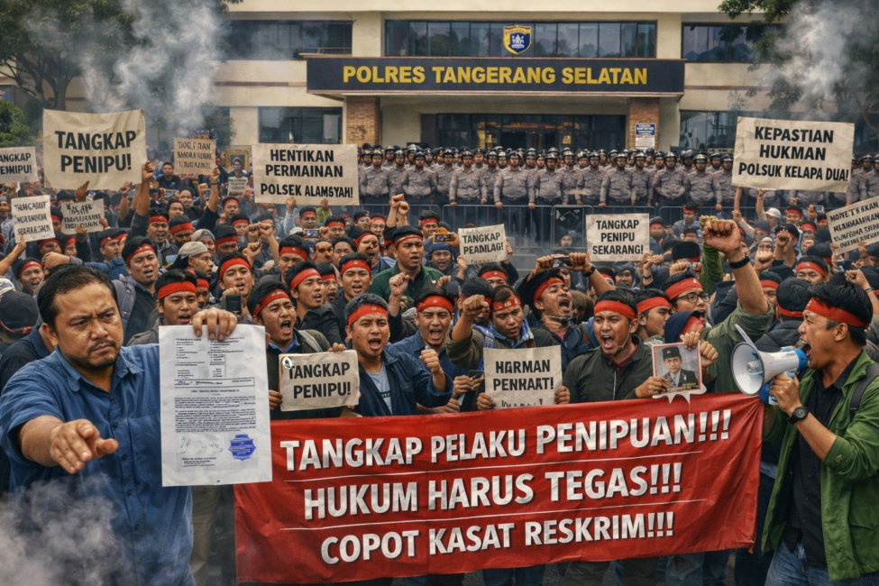 TANGERANGBERKABAR.ID – Aliansi Lembaga Swadaya Masyarakat (LSM) dan mahasiswa se-Provinsi Banten mengancam akan menggelar aksi unjuk rasa besar-besaran di Mapolres Tangerang Selatan dan Polsek Kelapa Dua pada Senin, 9 Februari 2026 mendatang. Aksi ini dipicu oleh lambatnya penanganan kasus dugaan penipuan dan penggelapan yang menimpa Ketua Umum LSM Geram Banten Indonesia, Alamsyah.