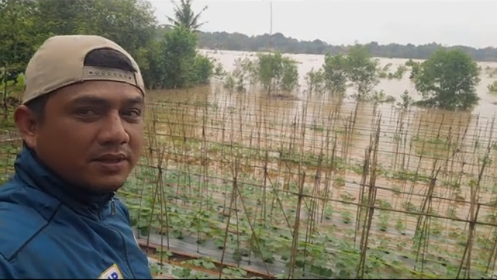 Salah satu petani muda dari komunitas Taruna Tani Milenial Al Prakarsa, Satria, membagikan kondisi terkini lahan pertaniannya yang terdampak cukup parah. Dalam unggahan videonya, terlihat tanaman yang sudah dipasangi lanjaran (penyangga bambu) terendam air luapan sungai hingga hanya menyisakan bagian pucuknya saja.